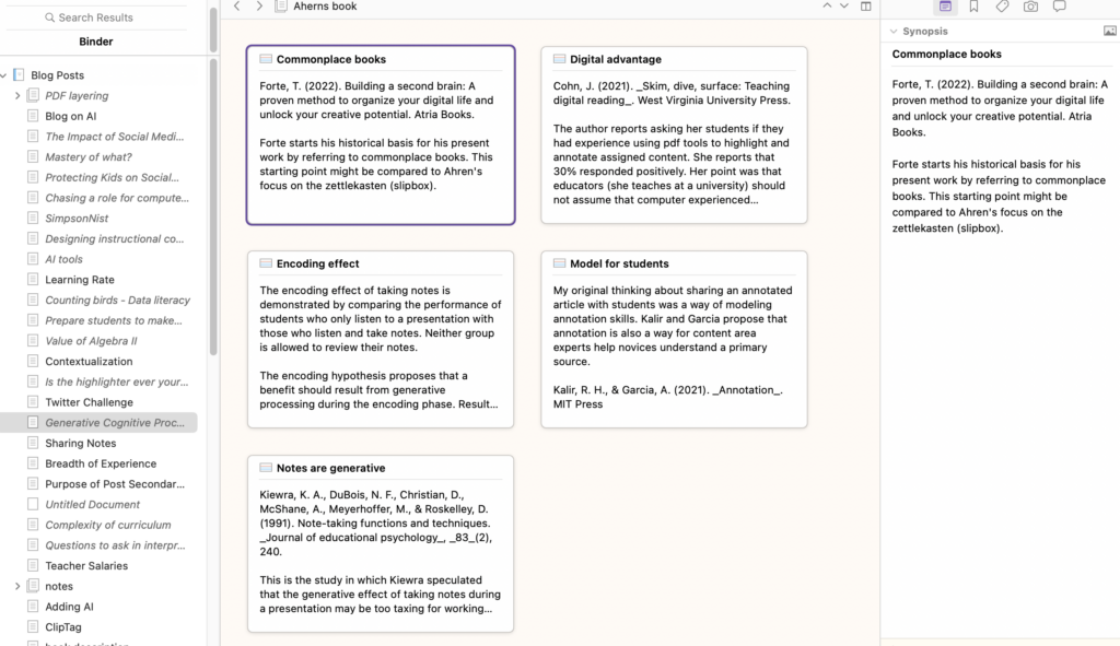 Learning to write might represent an example. I have often referred to Flower and Hayes’ writing process model when describing the components of writing and writing to learn. The use of AI to offer content to provide the basis for a writing task and perhaps even to offer a structure to guide the organization of a writing product could free up capacity to focus on lower-level skills such as spelling, grammar, and coherent paragraphs. In contrast, I typically use Grammarly while I write to allow to move more quickly while relying on this AI tool to alert me to possible spelling and grammatical improvements.