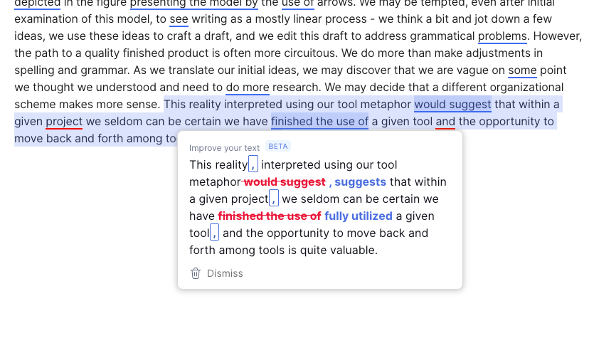 Emphasize feedback: Tools like Grammarly give immediate feedback on grammar, syntax, cohesion, and organization, helping students revise iteratively while concepts are still fresh.