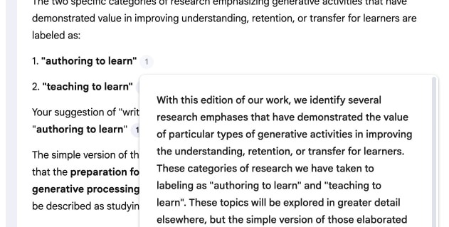 Learning to write might represent an example. I have often referred to Flower and Hayes’ writing process model when describing the components of writing and writing to learn. The use of AI to offer content to provide the basis for a writing task and perhaps even to offer a structure to guide the organization of a writing product could free up capacity to focus on lower-level skills such as spelling, grammar, and coherent paragraphs. In contrast, I typically use Grammarly while I write to allow to move more quickly while relying on this AI tool to alert me to possible spelling and grammatical improvements.