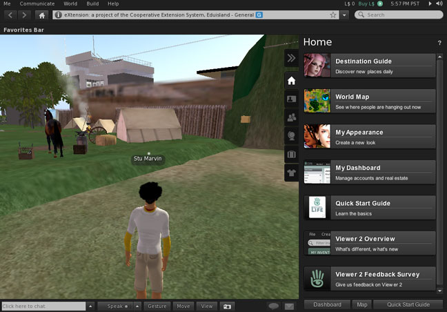 A new (beta) viewer has been released for Second Life. This online social environment has kind of faded from view, but it is hard to maintain attention in the rapidly changing Web2.0 world. I don’t know. I still don’t get it. The potential is certainly there for interesting simulations, but a) I seldom encounter something I see as an improvement over other web experiences that rely less on the artificial, b) I think Linden may understand the interest of many individuals in adult content and fail to respond in a way that would make Second Life a suitable educational environment, and c) the overhead of movement, learning skills, and the use of knowledge of each to create a caste system does not impress me. I would rather see students engaged with each other and with the real world around them via other far easier to use tools.