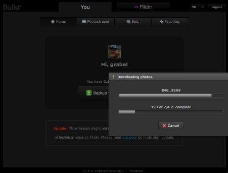 Still, it was enough for me to worry about my Flickr images. I have a fairly large collection and some of my images are family photos that go back 50 years. I decided I needed to back up my account. I have tried several techniques and I am inclined to recommend Bulkr. By this I mean I tried several options and this is the one that was successful. I did purchase the pro version because I wanted my original images. I have a 7D that takes large images and I needed the pro version (approx. $25) to download the originals.