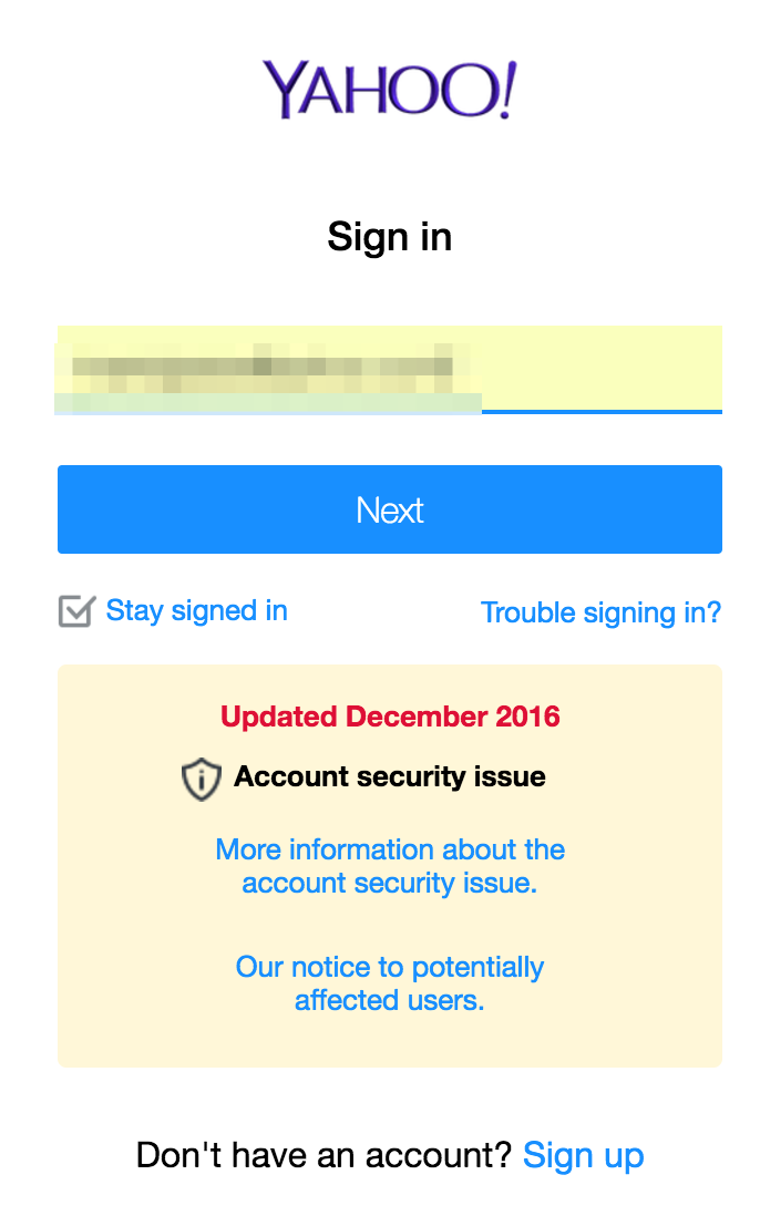 You have probably heard that a billion Yahoo! user accounts have been stolen. I must say that it was news that Yahoo had that many customers. I suppose many have accounts that have been abandoned.