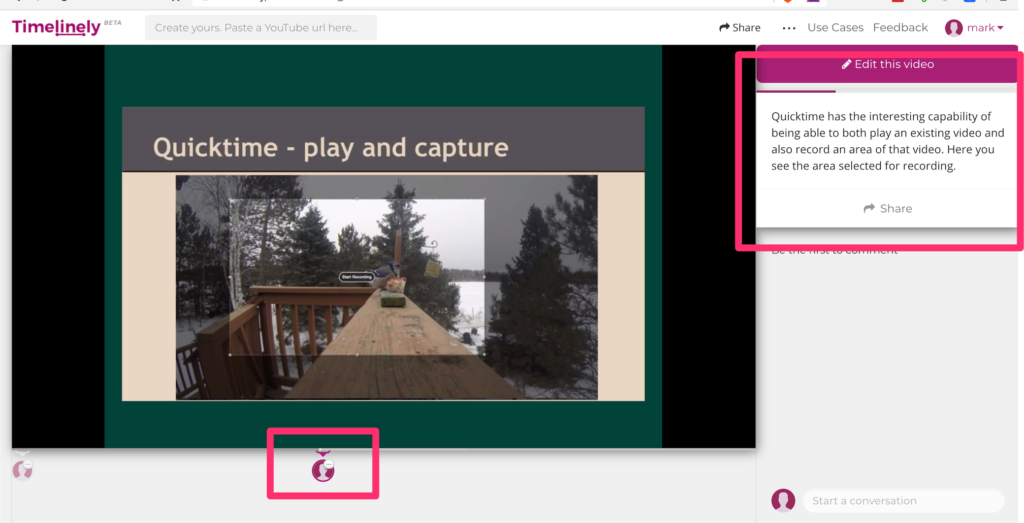 Timely is a tool that allows layering to be applied to existing online videos (e.g., YouTube content). Timely is similar to other online video annotation services I have identified and explained in my focus on layering. Additions are linked to designation points in the timeline of the video(see screen capture). To say this service is similar is not intended as a slight and there may be small differences in the features provided. Timely is easy enough to use and offers educators a way to supplement video comment with additions making information more useful as an instructional resource.