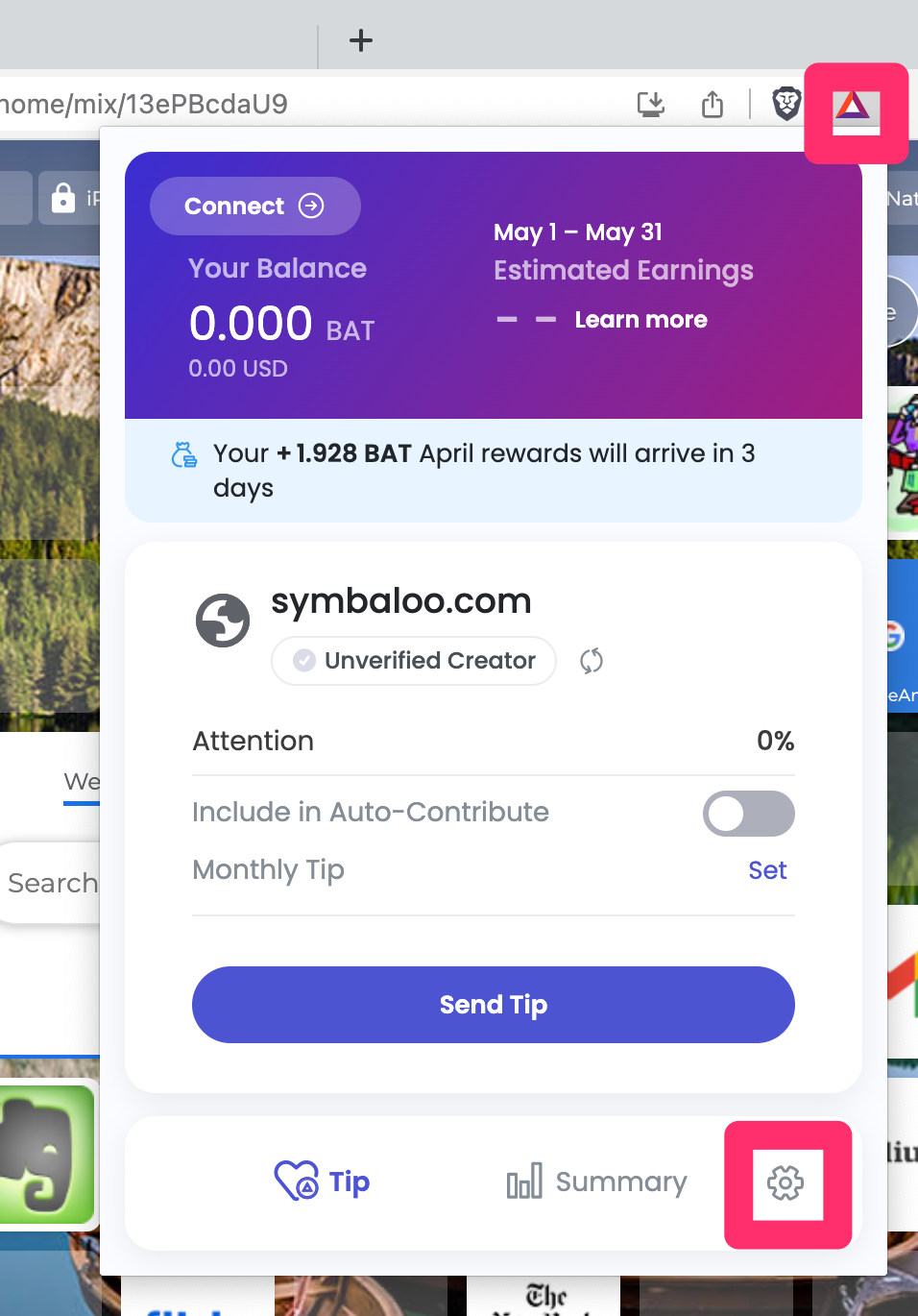 Here are the steps on how to earn BAT and tip content creators using Brave Rewards: